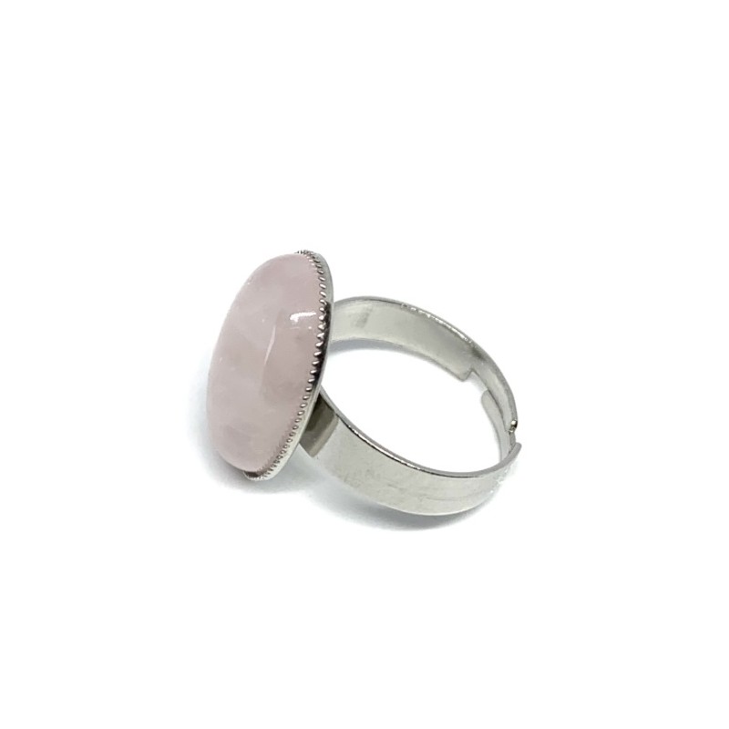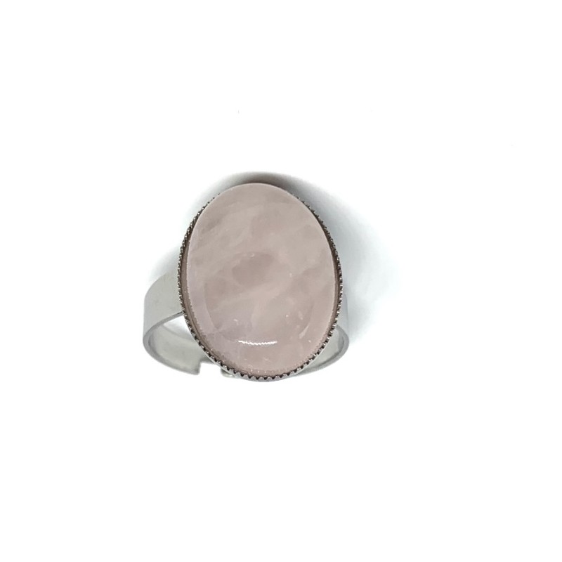 Une Bague en acier qui est réglable avec une pierre en quartz rose. Marque :Z. Émilie